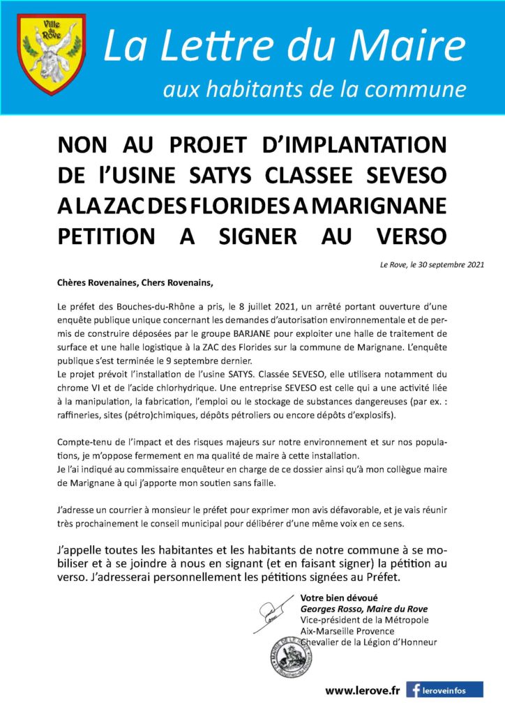> NON AU PROJET D’IMPLANTATION DE l’USINE SATYS CLASSEE SEVESO A LA ZAC DES FLORIDES A MARIGNANE