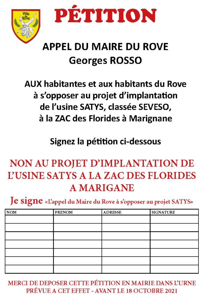 > AVIS DEFAVORABLE DU MAIRE DU ROVE ET APPEL A SIGNER UNE PETITION