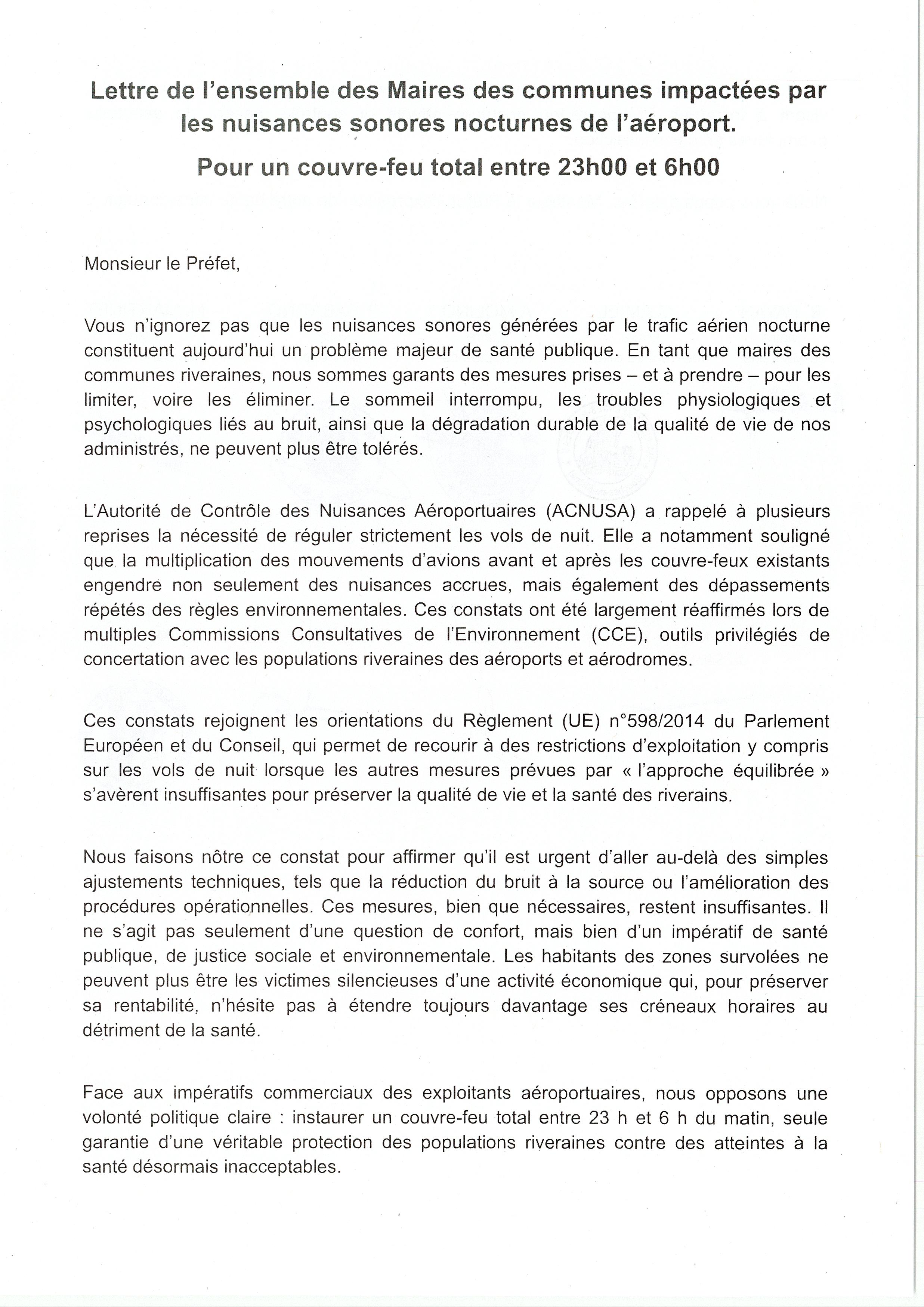 Dans le même temps, une mobilisation collective a vu le jour : les maires des communes impactées par les nuisances sonores nocturnes ont adressé une lettre commune au préfet de région. Ils y demandent l’instauration d’un couvre-feu total entre 23h et 6h du matin sur les vols au départ et à l’arrivée de l’aéroport Marseille-Provence afin de garantir le respect du sommeil et de la qualité de vie des habitants.