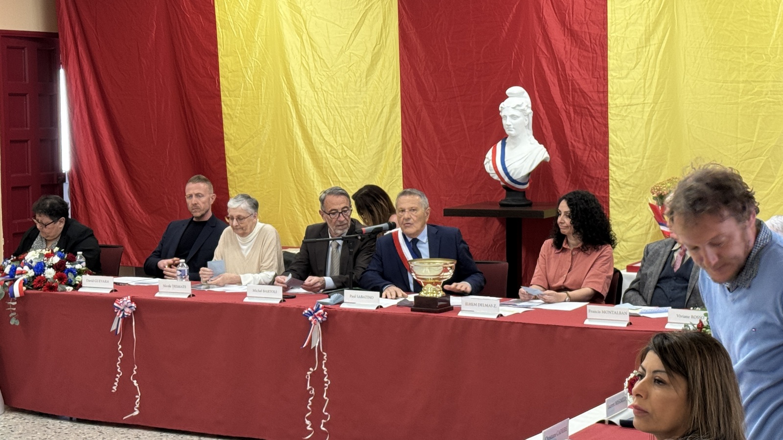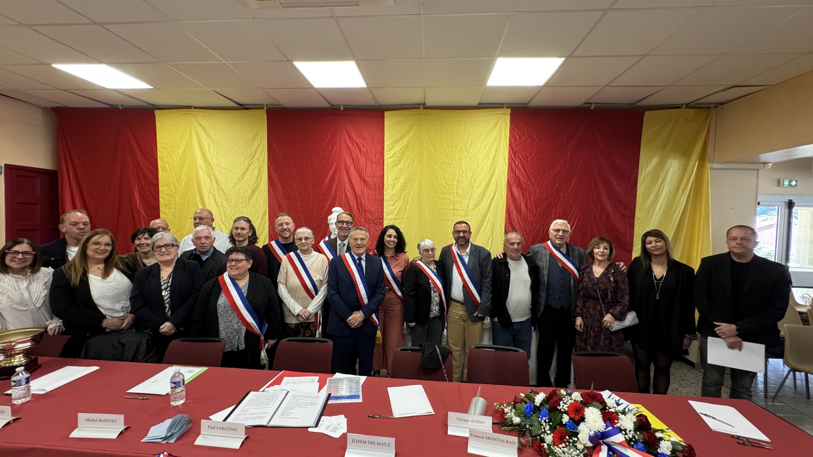 Samedi 21 mars, la salle des fêtes affichait complet pour la séance d’installation du nouveau conseil municipal. Dans une ambiance à la fois solennelle et chaleureuse, marquée par une forte affluence de Rovenaines et de Rovenains, Paul Sabatino a été officiellement élu maire par les membres du conseil municipal. Moment symbolique de la cérémonie, l’écharpe tricolore lui a été remise par la doyenne de l’assemblée, Viviane Rosso, sous les applaudissements nourris du public.