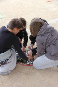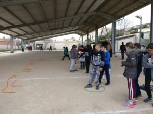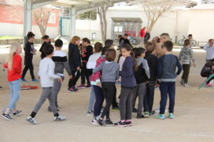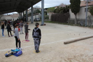 Au total, ce sont près de 130 élèves qui participent à ce projet mettant en œuvre motricité, adresse, réflexion et respect de règles de sécurité strictes. Les classes sont réparties les mardi et jeudi après-midi et partagent le terrain de jeu avec les boulistes. Ce jeudi, les élèves des classes de Mme Gondran et Mme Bonnery ont eu la visite surprise de monsieur le maire venu les saluer et les encourager.