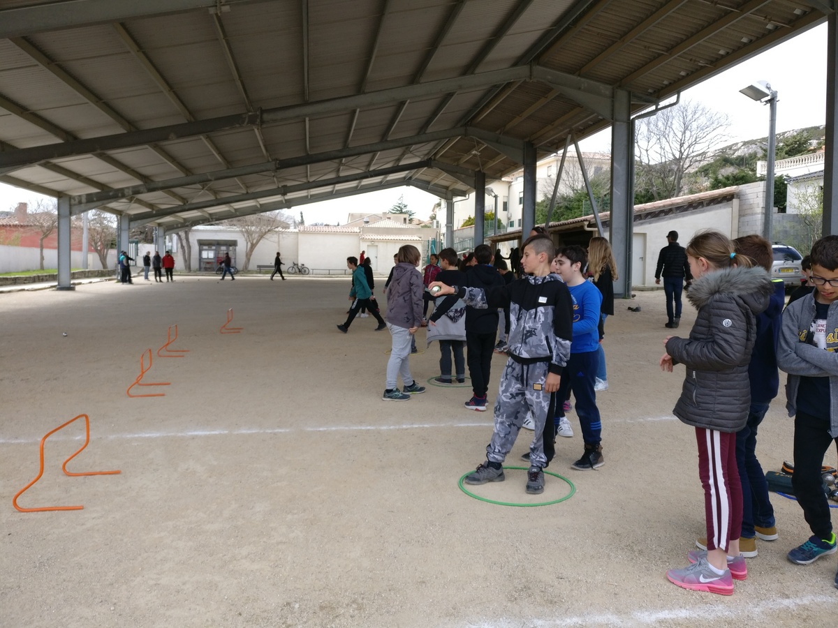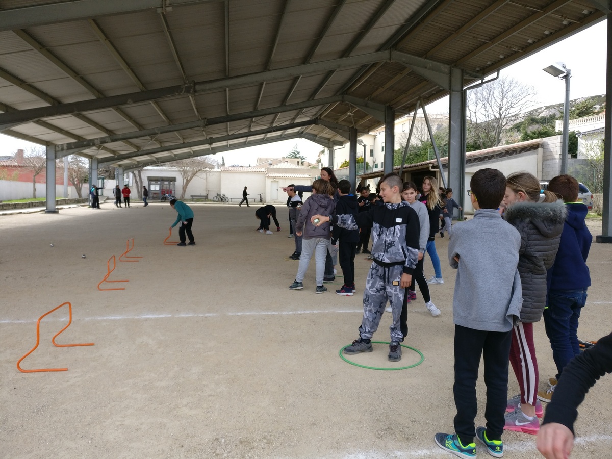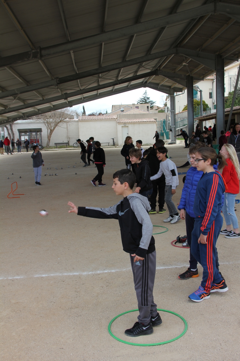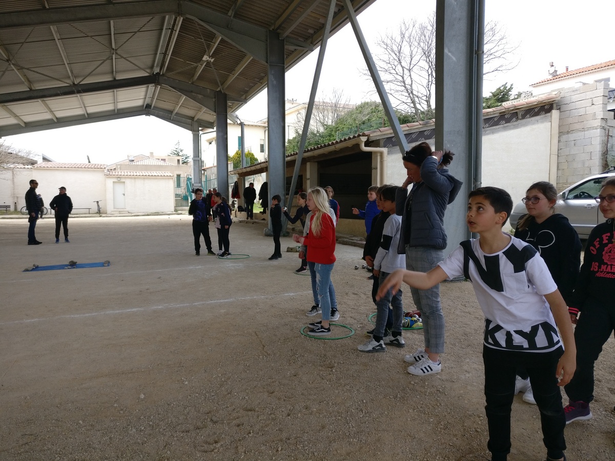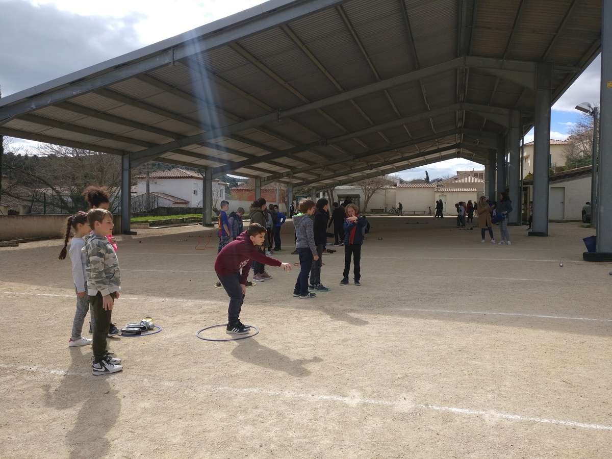 Dans le cadre des apprentissages scolaires en Éducation Physique et Sportive, cinq classes de cycle 3* (CM1 et CM2) du groupe scolaire François Bessou se sont engagées dans un projet Pétanque grâce au soutien de la municipalité. Le Maire de la commune, Georges Rosso, a immédiatement donné son aval et mis à disposition le boulodrome municipal couvert situé à proximité de l’école, entre le 26 février et le 4 avril selon la volonté des enseignants.