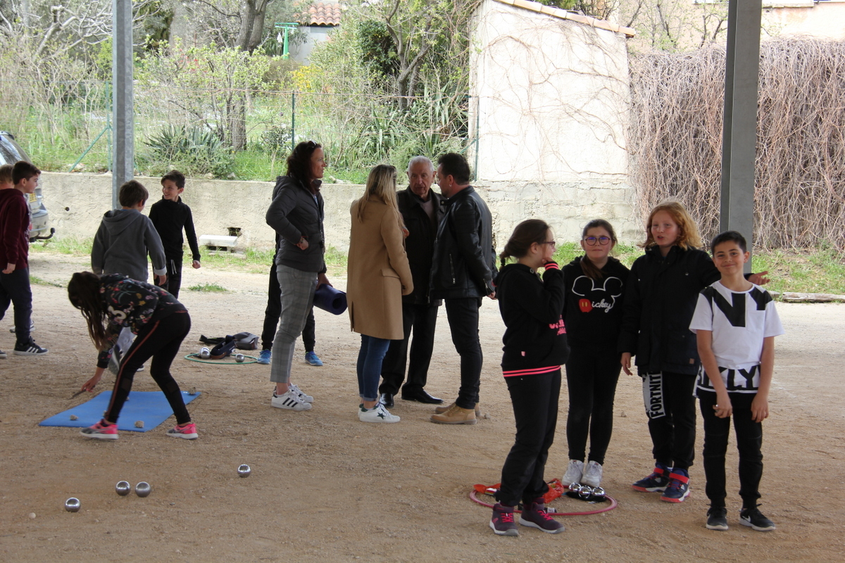 Au total, ce sont près de 130 élèves qui participent à ce projet mettant en œuvre motricité, adresse, réflexion et respect de règles de sécurité strictes. Les classes sont réparties les mardi et jeudi après-midi et partagent le terrain de jeu avec les boulistes. Ce jeudi, les élèves des classes de Mme Gondran et Mme Bonnery ont eu la visite surprise de monsieur le maire venu les saluer et les encourager.