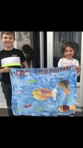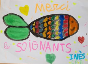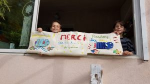 BRAVO ET MERCI AUX ENFANTS, A LEURS FAMILLES ET AUX ENSEIGNANTS POUR CETTE INITIATIVE SOLIDAIRE ET DE SOUTIEN ENVERS LES SOIGNANTS ET LES PERSONNELS MOBILISÉS ET EXPOSÉS.