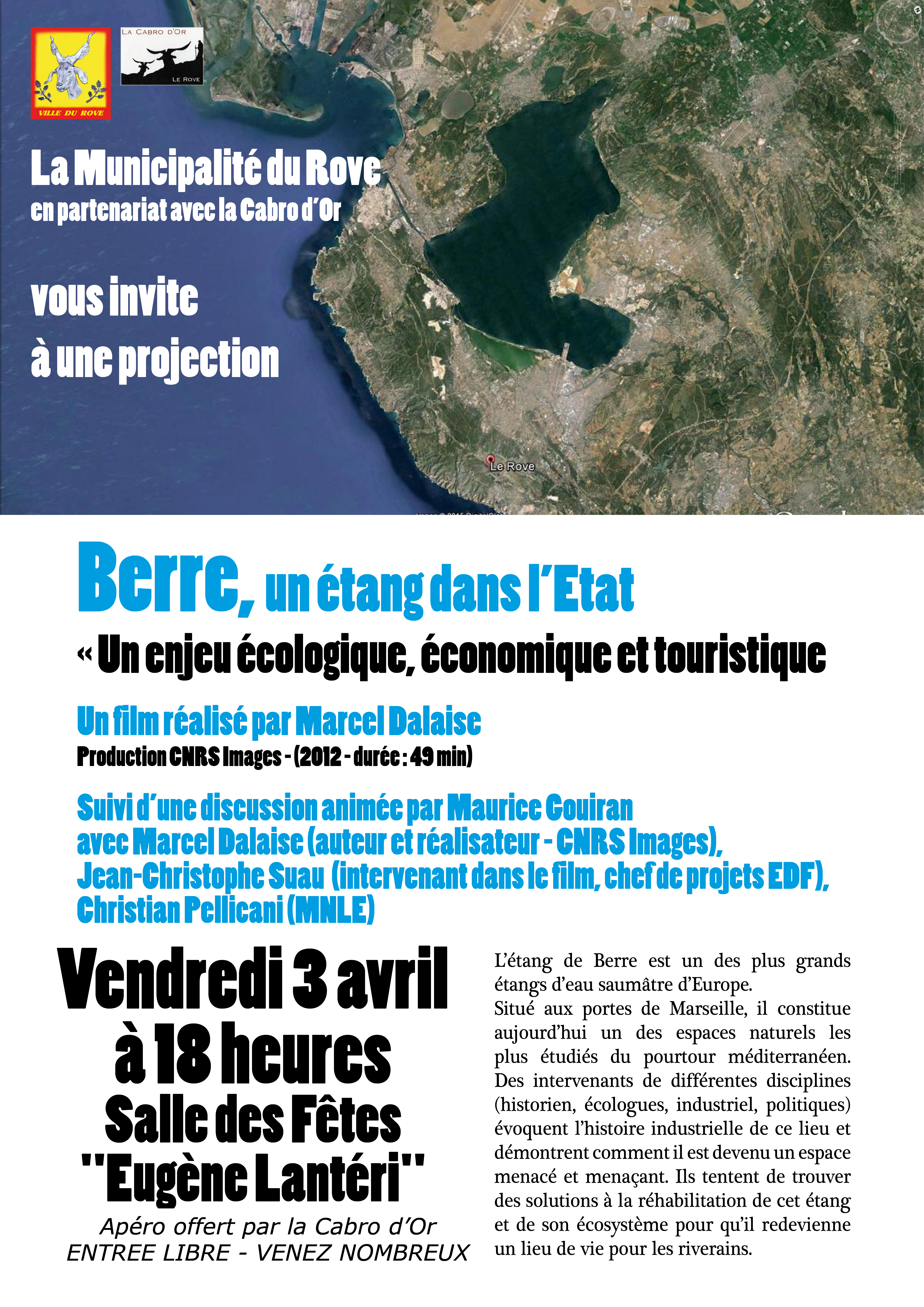 La municipalité du Rove en partenariat avec l’association la cabro d’Or organise une projection du film« Berre, un étang dans l’Etat » réalisé par Marcel Dalaise (CNRS Images – 2012 – durée : 49 min)