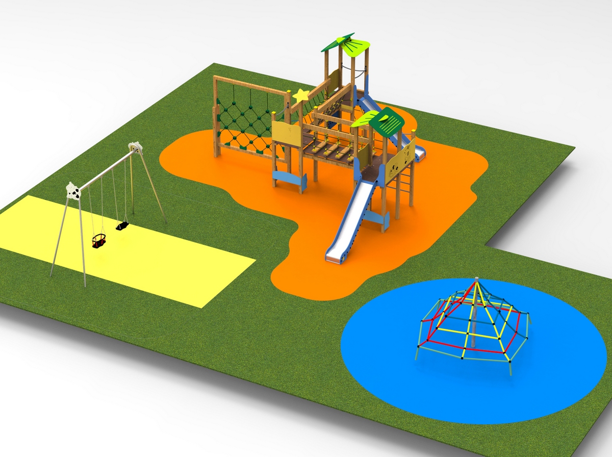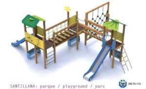 cordes, 2 passerelles à cordes, 2 sièges Tertulia, 1 pont oscillant, 1 jeu baleine, 2 toboggans