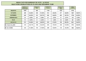 Résultats du scrutin du deuxième tour des élections législatives sur la commune du Rove Partager Email Print 2022-06-20 admin tweet
