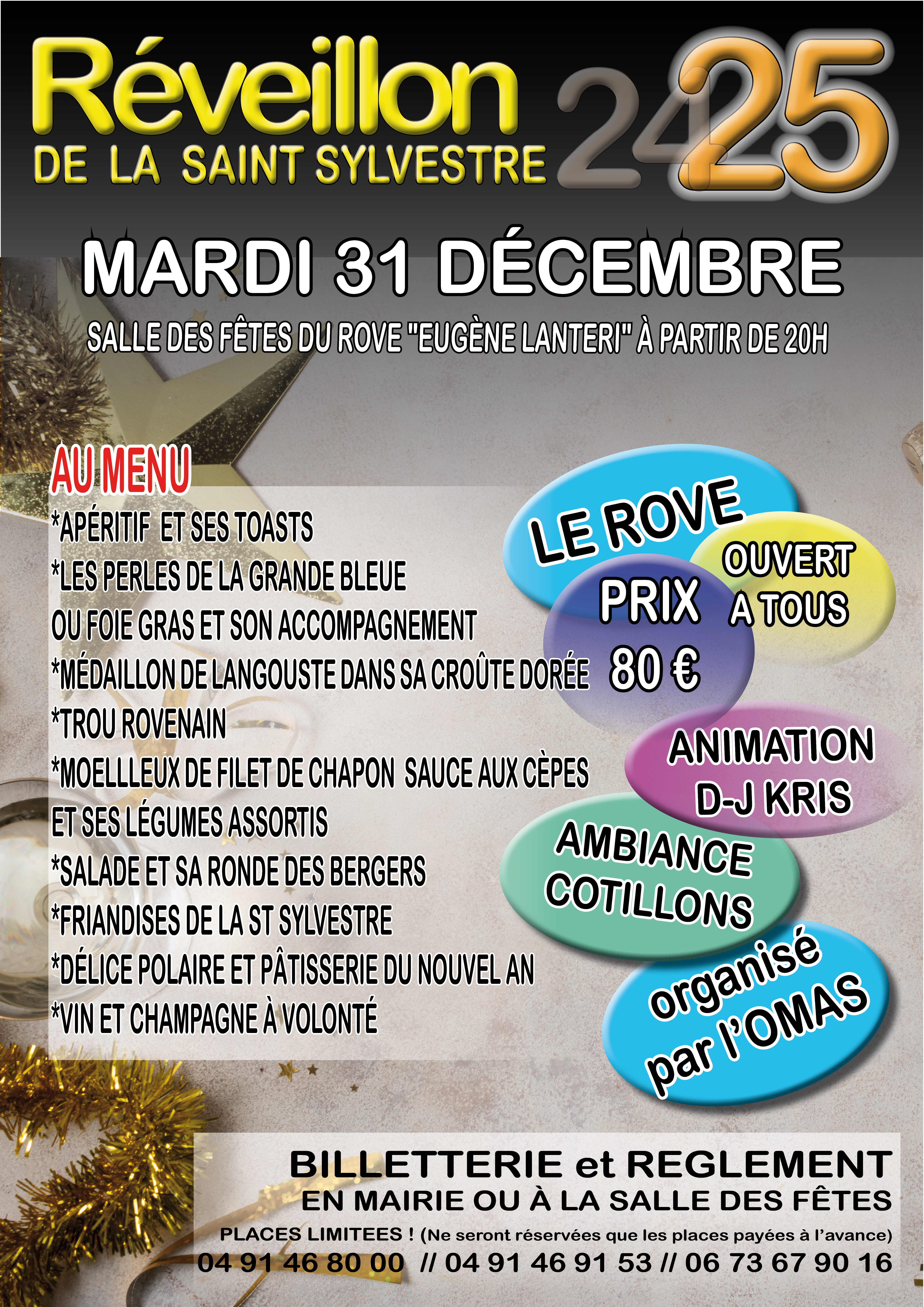 Mardi 31 décembre / à partir de 20h / salle des fêtes Eugène Lantéri