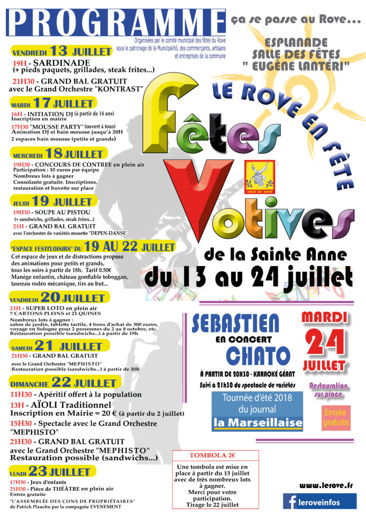Les fêtes votives de la Sainte Anne organisées par la municipalité du Rove et le comité des fêtes se dérouleront du 13 juillet au 24 juillet 2018.