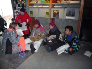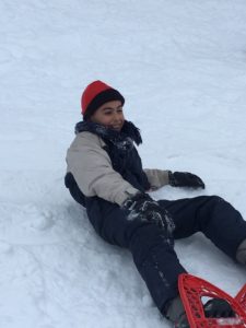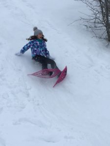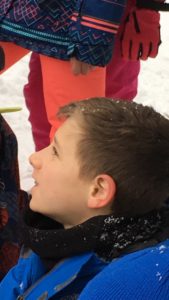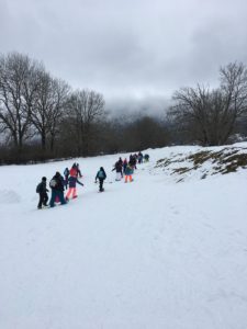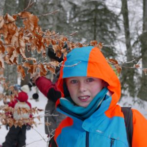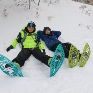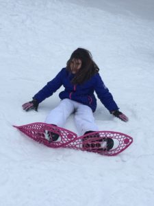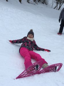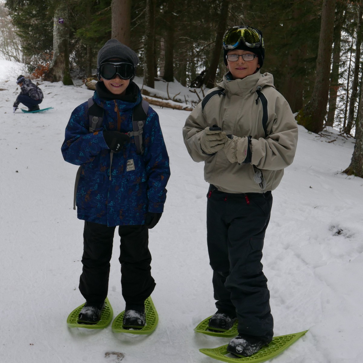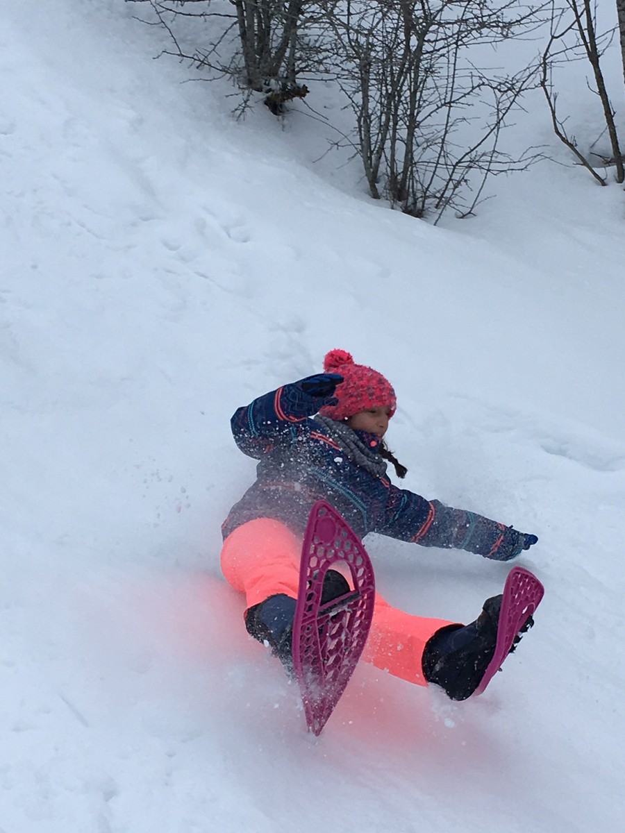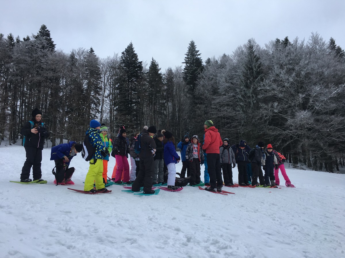 L’après-midi ce fut une belle balade en raquettes parsemée de glissades, de roulades et de sauts dans la neige à la recherche de traces d’animaux sauvages.