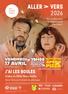 - Iraka et Mila Necchella pour le spectacle “J’AI LES BOULES”, une création des Théâtres dans le cadre du programme Aller Vers. Le 12 Septembre à Marseille.