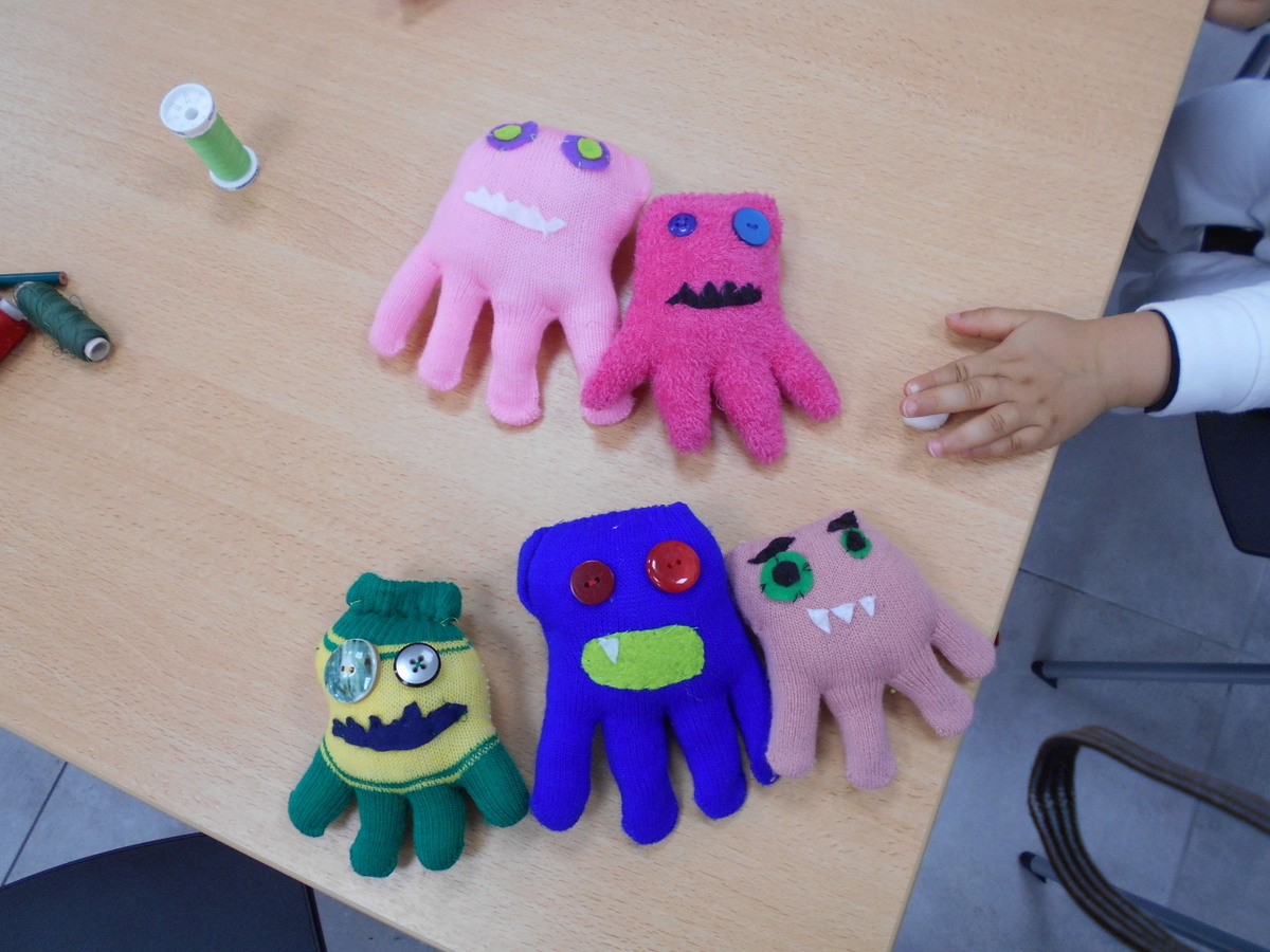 Chacun a pu confectionner un doudou à base d'un gant en laine, de boutons, feutrine... Il a fallu pratiquer la couture !