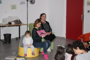 L'équipe de la médiathèque, Gaëlle et Nathalie, ont animé brillamment en racontant tout à tour des histoires.