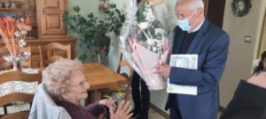 Le 23 mars dernier, madame Suzanne ELZEARD dit « Suzette » a soufflé au Rove et en famille ses 100 bougies. Ce jeudi matin, elle a reçu la visite amicale à son domicile de monsieur le Maire du Rove, M. Georges Rosso, venu lui remettre un magnifique bouquet au nom de la municipalité et de l’Omas. Il était accompagné de madame Viviane ROSSO, adjointe au maire et responsable des personnes du troisième âge, de madame Christiane CADIERE, présidente de l’Office Municipal des Affaires Sociales et de son chef de Cabinet, monsieur Thierry CHAUVELOT.