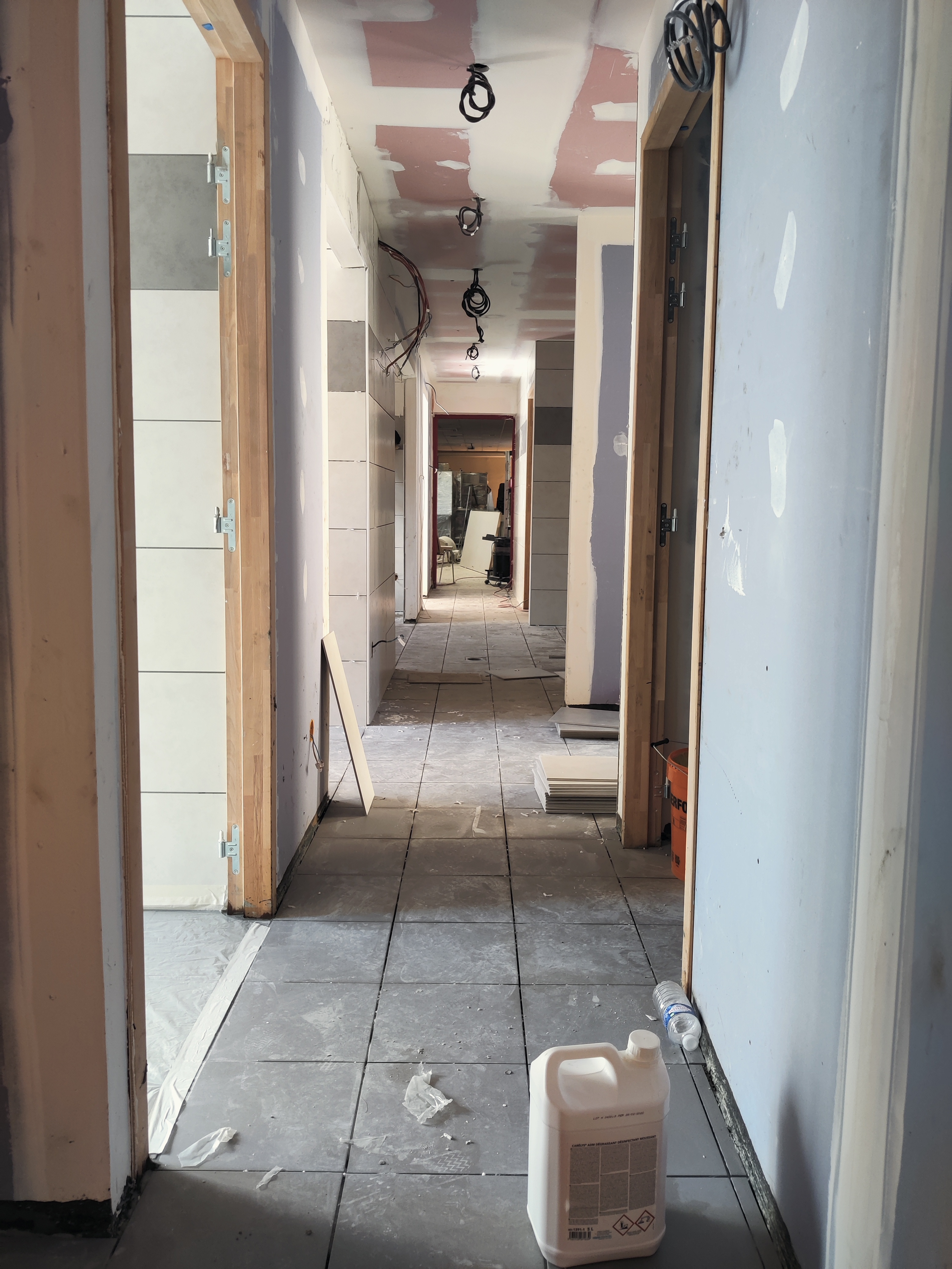 >> TRAVAUX DE RÉFECTION COMPLÈTE DE LA CUISINE ET CRÉATION DE SANITAIRES PMR A LA SALLE DES FÊTES, EN PHASE D’ACHÈVEMENT.