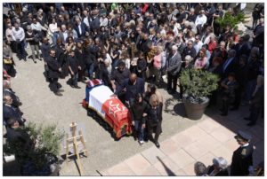 Après l’hommage républicain et le recueillement de sa famille autour du cercueil, l’immense foule a accompagné l’édile du Rove dans un cortège impressionnant jusque devant la mairie. Les élus rassemblés en haie d’honneur autour du cercueil ont accueilli la population et la famille dans un moment de communion chargée en émotion avant l’inhumation au cimetière communal.