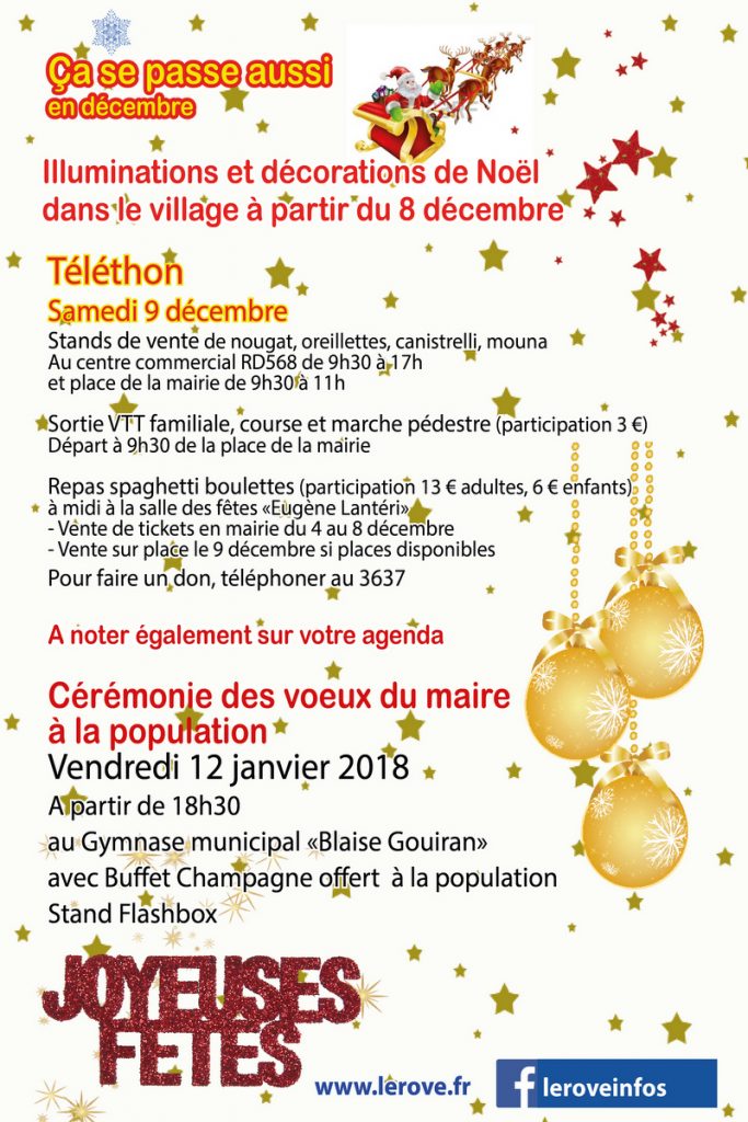 A retirer du 18 au 22 décembre de 9h à 12h à la salle des fêtes «Eugène Lantéri»