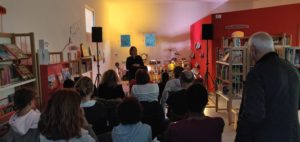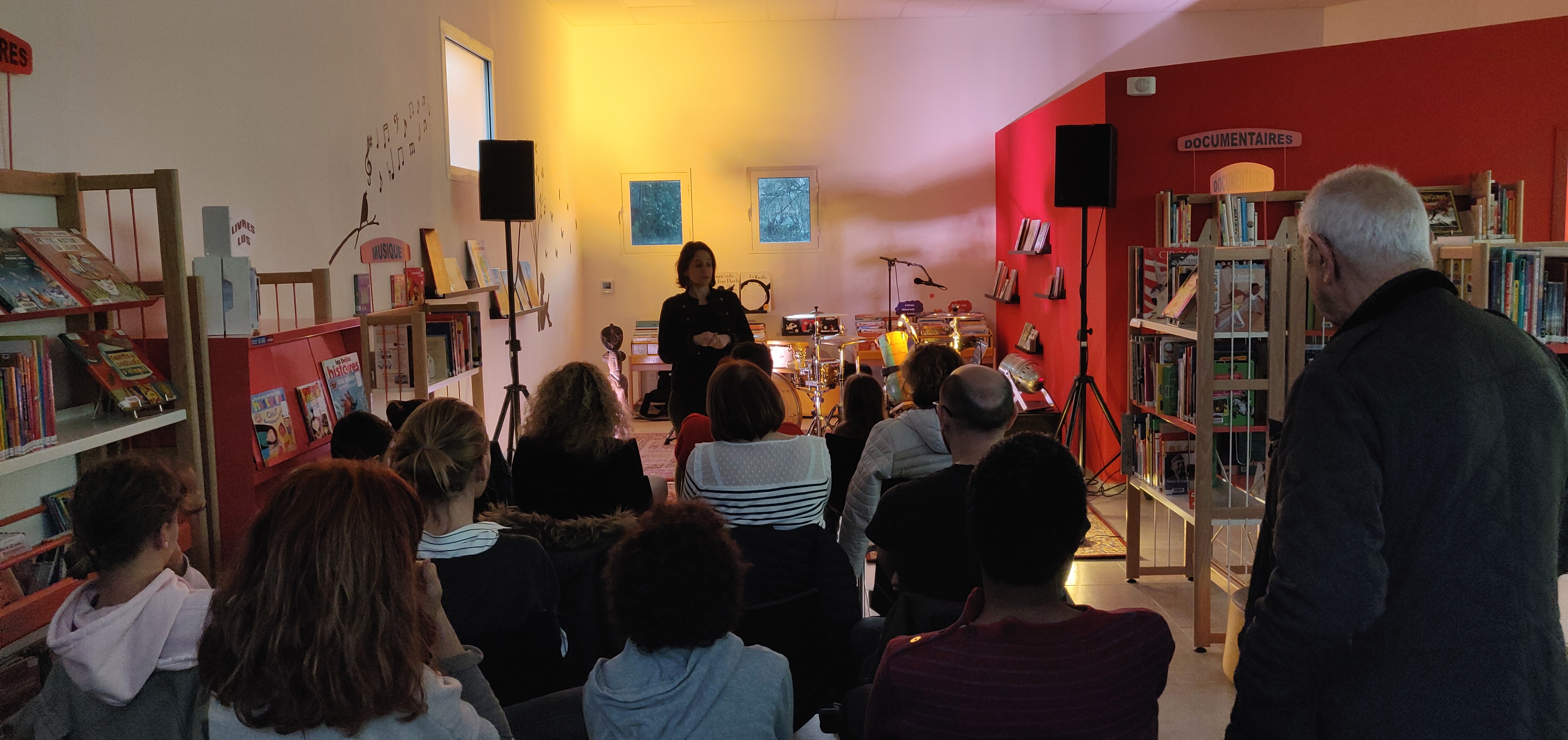 Ce soir, le public rovenain venu découvrir l’artiste YUL qui se produisait à la médiathèque municipale dans le cadre d’un spectacle proposé en partenariat avec la municipalité du Rove, la Bibliothèque départementale et La Mesón (représenté par Sarah), n’a pas été déçu. Ce fut un spectacle musical et poétique dans un cadre intimiste au milieu des livres.